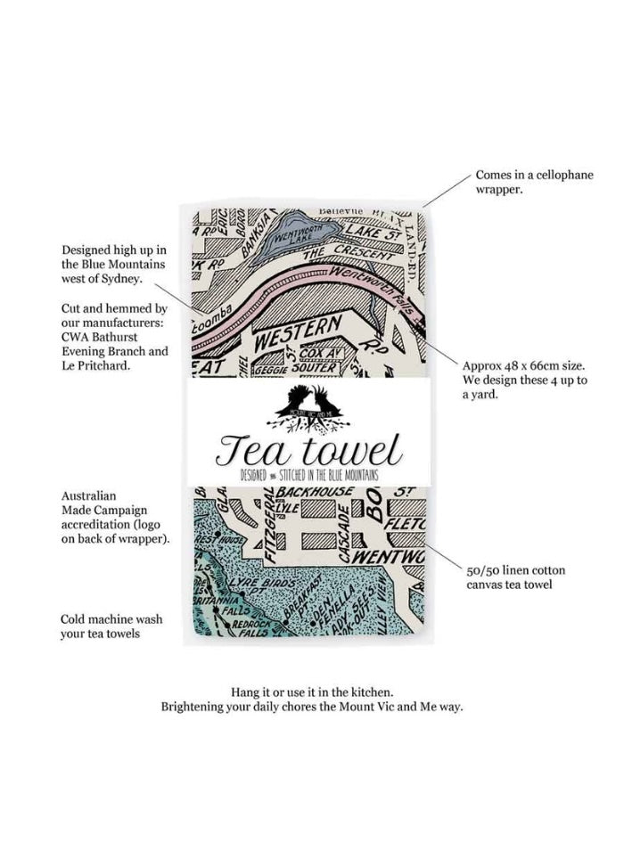 Mount Vic and Me quirky tea towels are ethically printed on linen/cotton canvas.